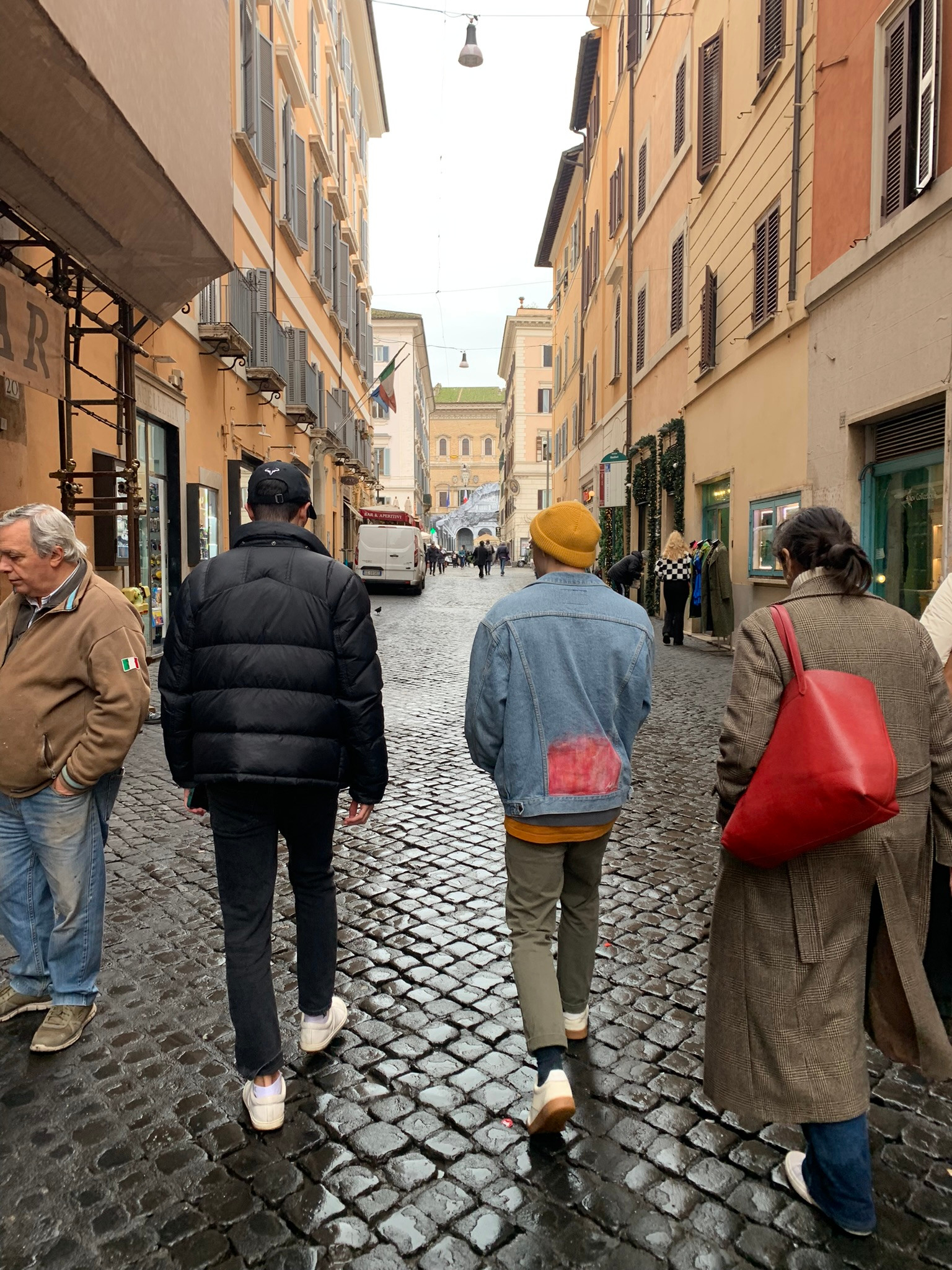 At 10:30 am on 1/18, I landed in Rome. Passing border control was a literal walkthrough as opposed to the "interrogations" I've experienced when traveling between China and the US. Austin, who arrived 2 hours prior, met me by the luggage carousels. I found my checked-in suitcase. It was cracked at one corner, but prompted by the urge to experience Rome, I muttered "Oh well" and hopped on a white official taxi with Austin.