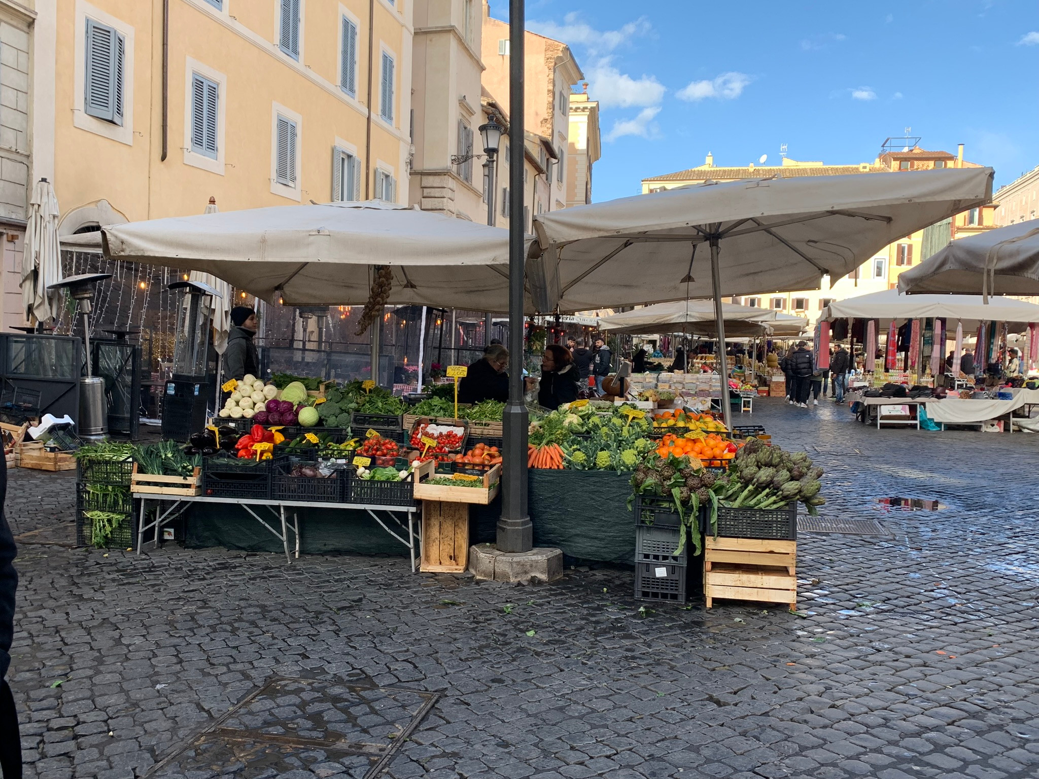 Thus commences my exploration of the eternal city! I joined friends for lunch in Campo di Fiori, sitting at outdoor wooden tables and eating fresh penne alfredo with a view of vendors in the open market. Afterwards, I wandered my neighborhood on foot, dipping into shops here and there, eventually into a Carrefour Express. I love browsing the different types of cheeses, deli meats, snacks, pastas and sauces. I recognized the protected product denominations I studied in Italian class years ago, and it was also exhilarating to be able to pick up fragments of conversations overheard.